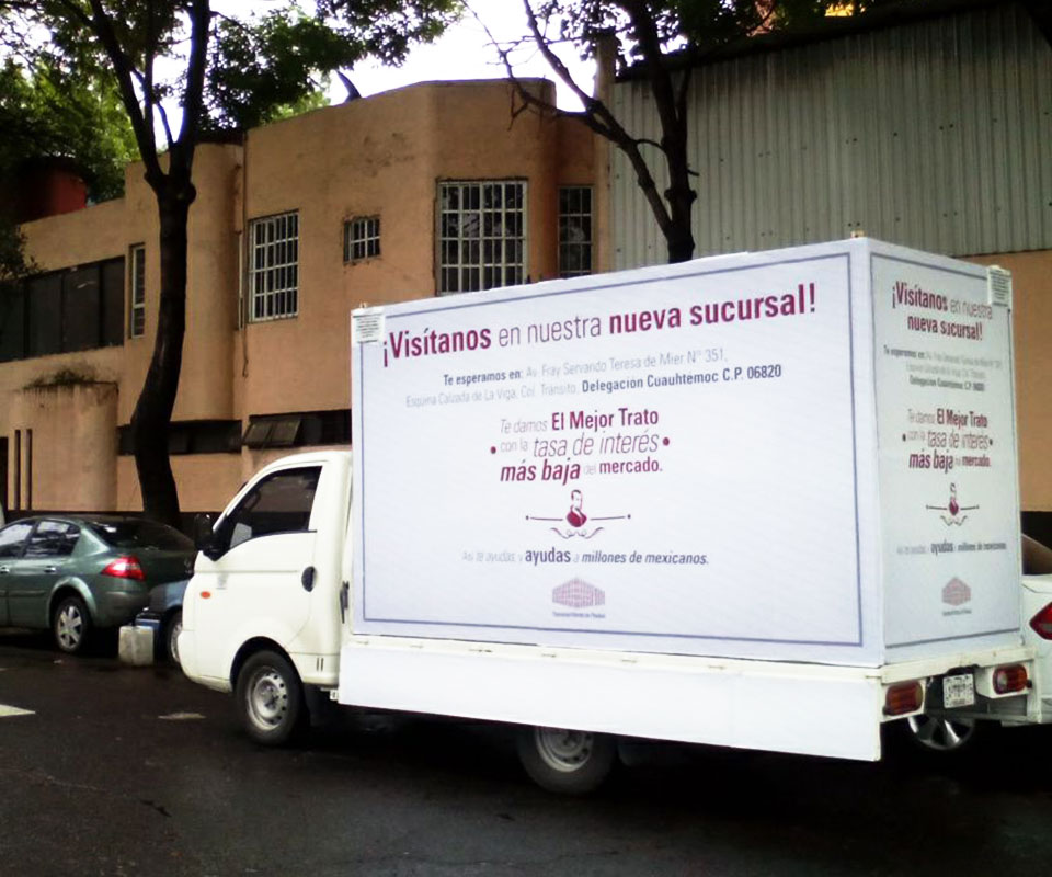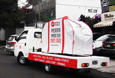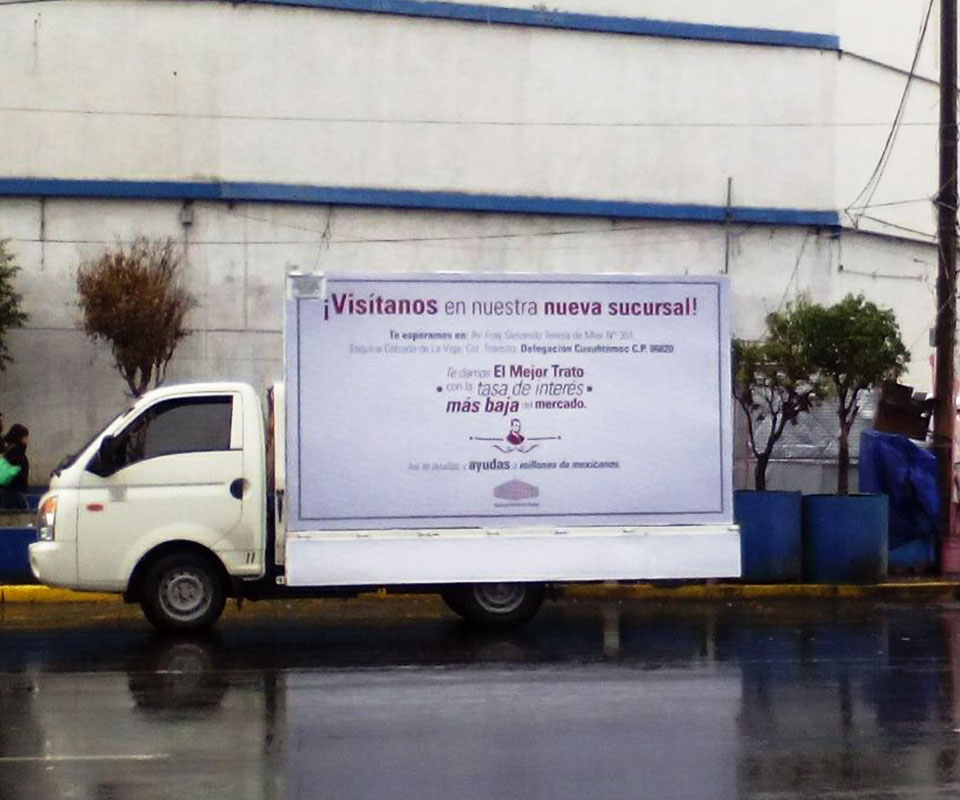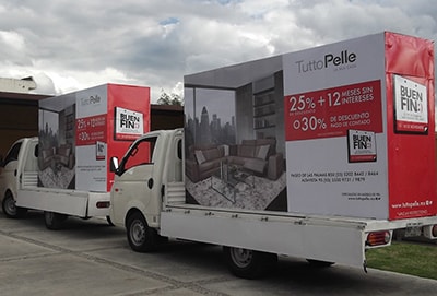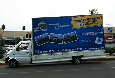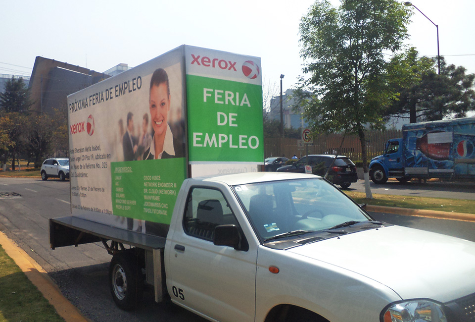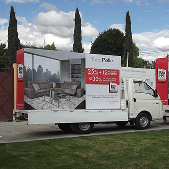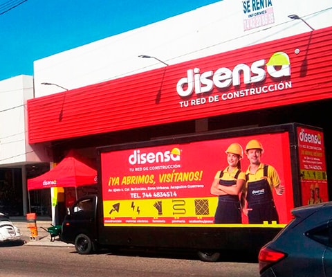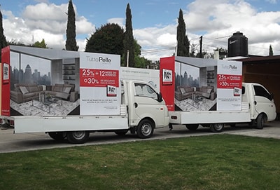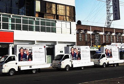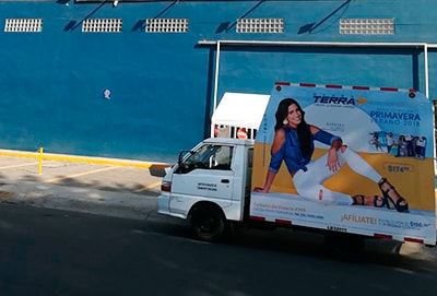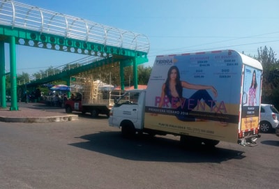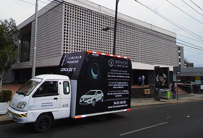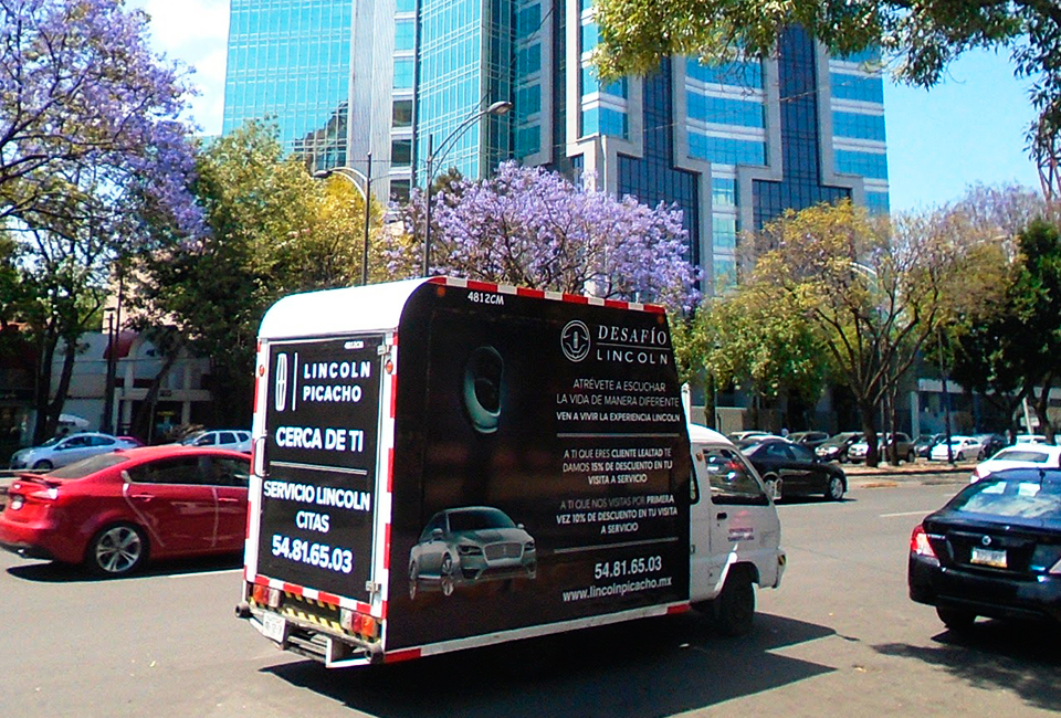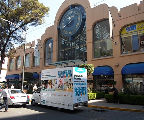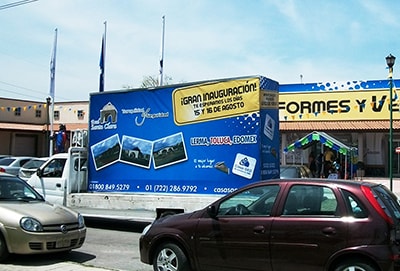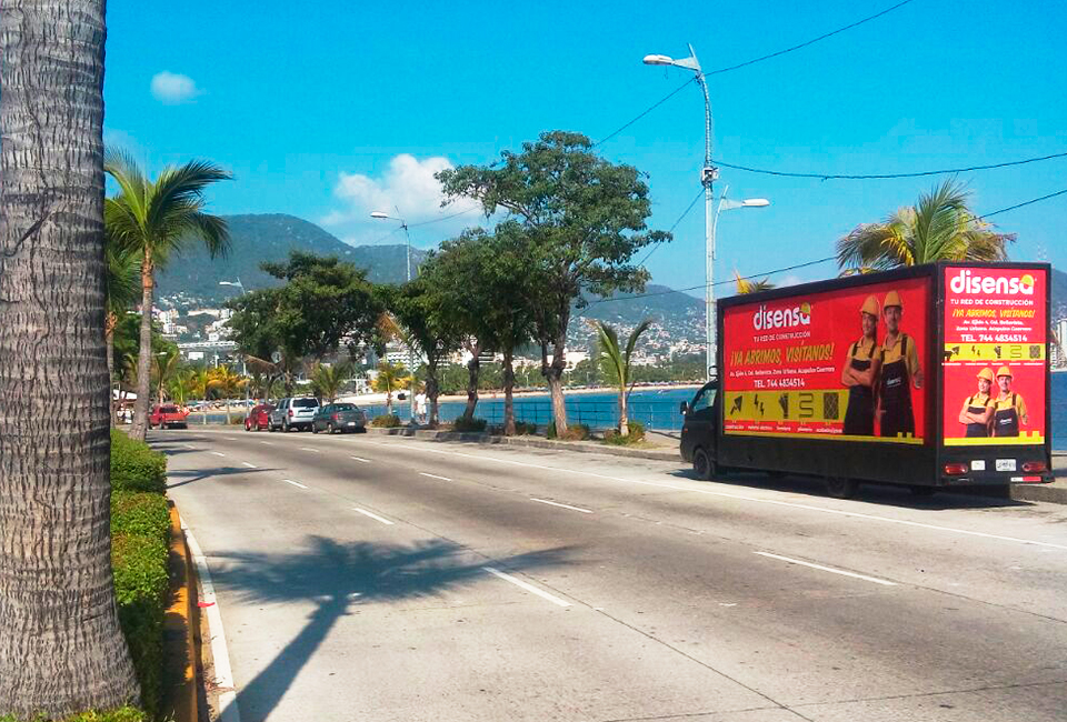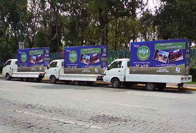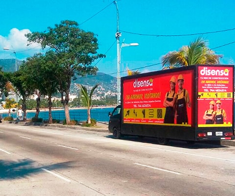 La valla móvil es un medio publicitario el cual se puede desplazar por las rutas más transitadas, impactando diferentes zonas frecuentadas por tu target objetivo. Es por eso que creamos este innovador medio publicitario, en el cual vestimos y escenificamos un vehículo de plataforma, donde podemos montar desde una cartelera publicitaria, hasta una escenificación.